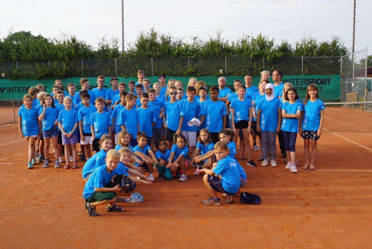 „Tennis macht Spaß“ — auch bei hochsommerlichen Temperaturen weit über 30 Grad. Den Beweis lieferten 28 Teilnehmer und 8 Trainer und Betreuer beim 2. Sommer-Ferien-Camp, das die „Tennisschule ballverrückt“ unter der Leitung von Headcoach Matthias Gauß mit Unterstützung der Tennisabteilung für jugendliche Mitglieder und Nichtmitglieder im Alter von fünf bis 16 Jahren veranstaltete.